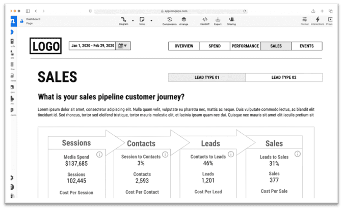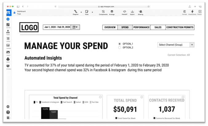Moqups also helps provide accountability for both our clients and us. That level of accountability must be very tight because, when you’re talking about data, it can be kind of ambiguous. Moqups makes what often lives in the head of an analyst into something with a physical output that can be seen and touched before writing a single line of code. For us, this is gold when accountability is the biggest predictor of project success or failure.