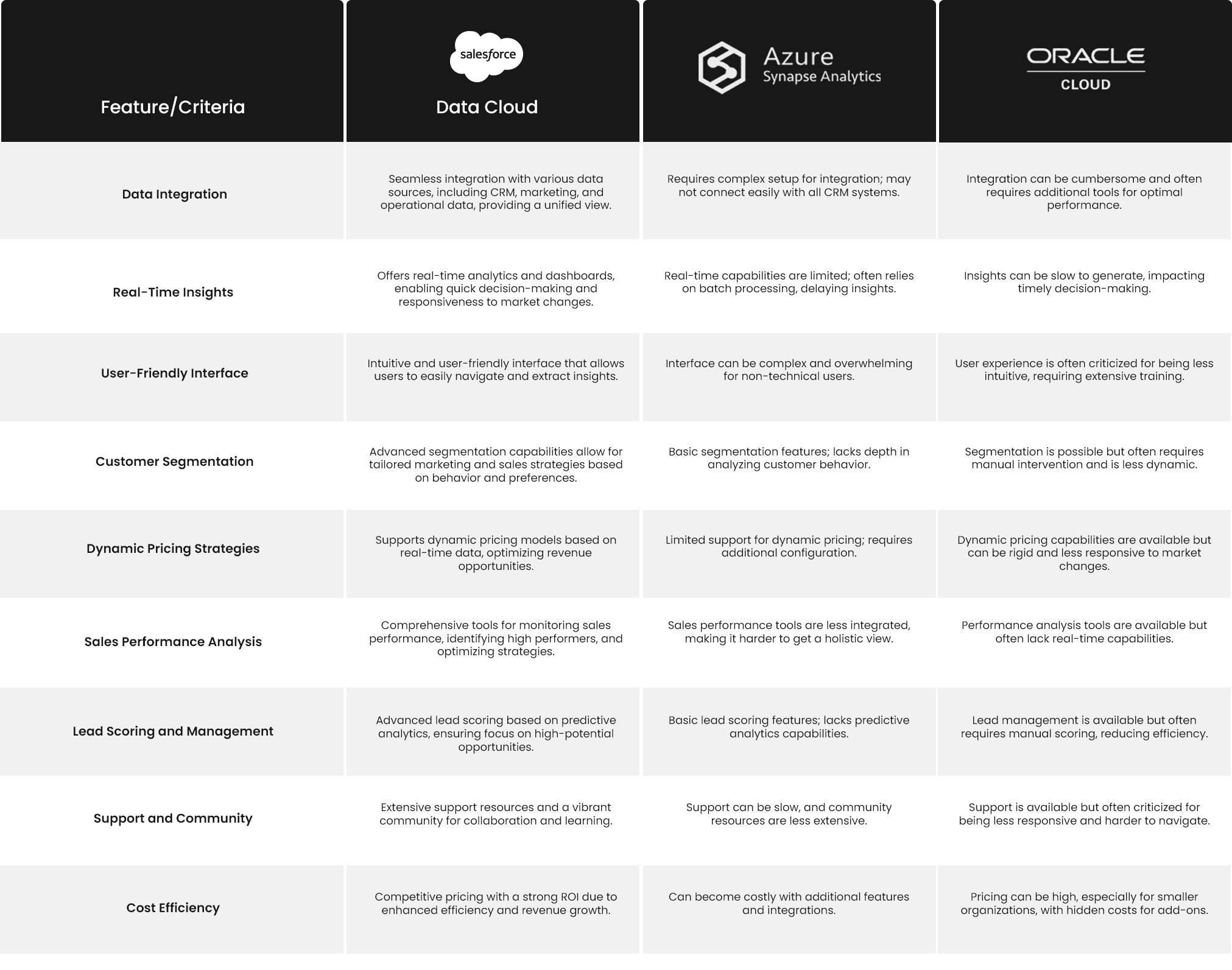 Salesforce Data Cloud integrates data across departments, providing a unified view of revenue metrics and operational performance. This enables CROs to align teams around shared data, automate data collection and reporting processes, and make faster decisions based on real-time insights across the entire revenue cycle.